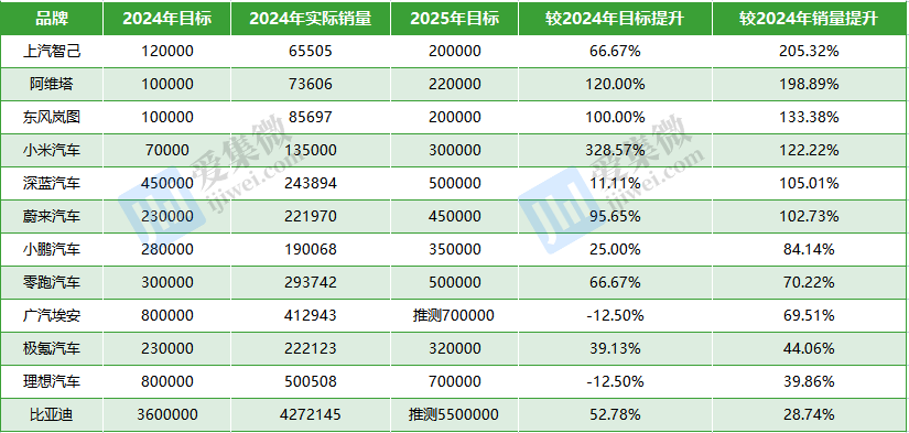 高通一曲“开门政策”(Open-door Policy),2024年销量垫底的上汽智己和阿维塔对2025年销量方针的提拔幅度最大,